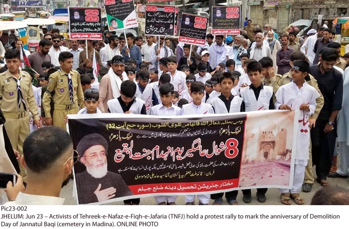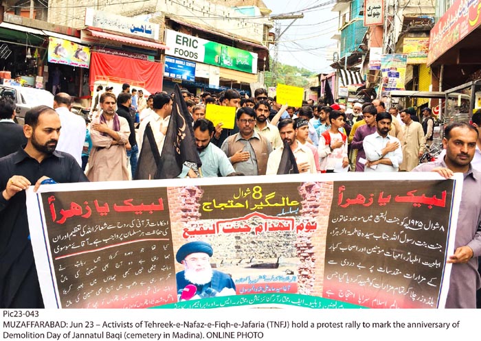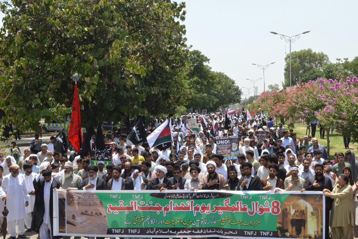 ISLAMABAD, June 24: On the call of Agha Moosavi, matchless peaceful protests of the Muslim nation held throughout the world to mark the demolition of Jannatal Baqee |