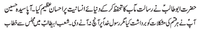 RAWALPINDI, December 6: Hazrat Abu Talib (AS) rendered great services to protect and defend the Prophethood |