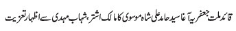 RAWALPINDI, February 26: The name of Hazrat Ummal Baneen (S.A) is the bright symbol of love towards the Ahle Bait Mohammad (SAWW) - Dr S Zaman |