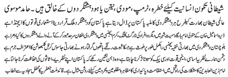 ISLAMABAD, February 3: The evil trio is dangerous for humanity, Trump, Moodi and Netanyahu are the creators of terrorists - Hamid Moosavi |