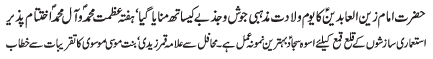 | RAWALPINDI, February 2 : Today the Zahoor purnoor of Imam Zainal Abideen will be celebrated with great religious zeal and reverence | |||