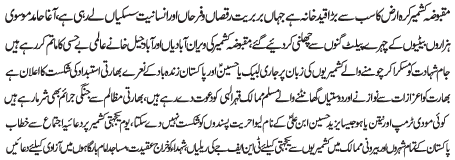 | ISLAMABAD, February 28: The terrorists backed by the colonial powers are destroying the peace of the world - Syed Shuja'at Bukhari | |||
