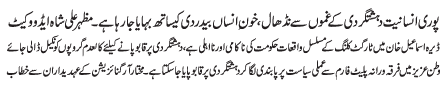 ISLAMABAD, February 9: The whole of humanity is effected due to terrorism; human life has no value - Mazhar Ali Shah Advocate |