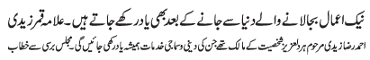 RAWALPINDI, February 20: On the Day of the martyrdom of Hazrat Fatima Zahra (S.A) solidarity will be expressed with the oppressed - Major (R) Baqir Bukhari |