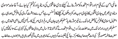 ISLAMABAD, January 2: We will defeat all conspiracies while following the path set by Mukhtar e Aale Mohammad - Col (R) Sakhawat Kazmi |