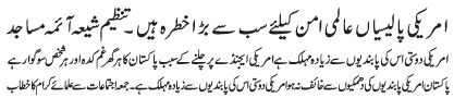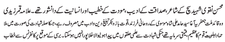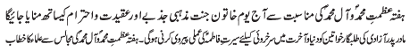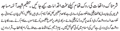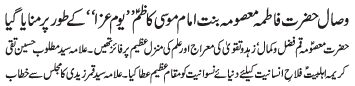 ISLAMABAD, January 25: TNFJ announced the observation of Hafta e Azmat e Mohammad O Aale Mohammad (A.S) from 9-15 Jamadiul Awwal |