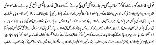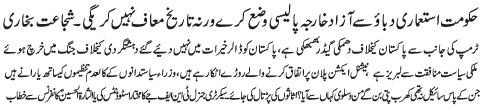 | ISLAMABAD, January 4: The government should form the foreign policy free of the colonial influence otherwise history will not forgive them - Shija'at Bukhari | |||