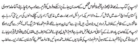 ISLAMABAD, January 9: The enmity of the American president against Islam are to divide humanity and is equivalent to strengthening terrorists - Mazhar Ali Shah Advocate |