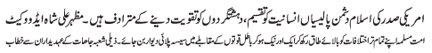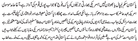 ISLAMABAD, January 15: Pakistan had better not to be considered as Nepal or Bhutan, the reply of the Pak Army to the American and Indian generals is the voice of the whole nation - Hamid Moosavi |