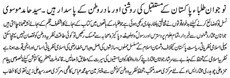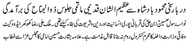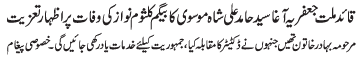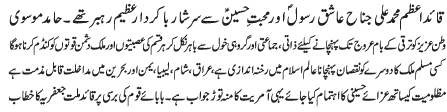 ISLAMABAD, September 12: The Quaid e Azam Mohammad Ali Jinnah was true follower of the Holy Prophet (SAWW) the great leader whose heart was filled with the love of Imam Hussain (AS) - Hamid Moosavi |