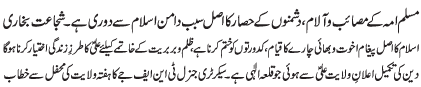 | ISLAMABAD, September 4: The real reason for the Muslim nation to get into all kinds of problems is due to staying away from the teachings of Islam - Shuja'at Bukhari | |||