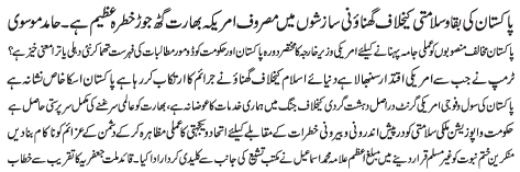 ISLAMABAD, September 8: American and Indian alliance busy in hatching conspiracies is very dangerous for the sovereignty and defense of Pakistan - Hamid Moosavi |
