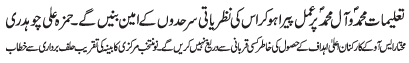 | RAWALPINDI, September 18: Ignoring the Maktab e Tasheyyo by the newly elected government is a cause of grave grief - Malik Raza Khokhar Advocate | |||