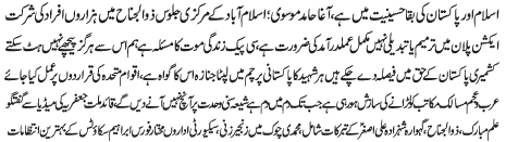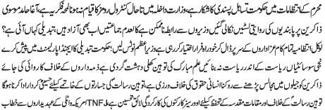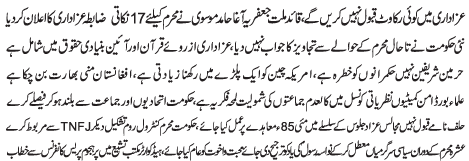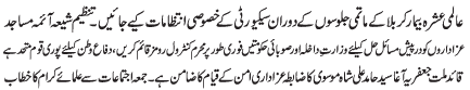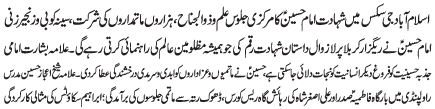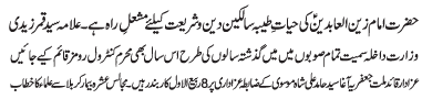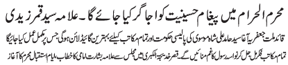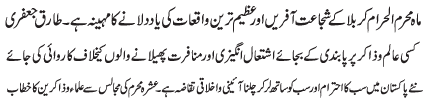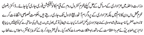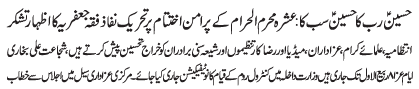 ISLAMABAD, September 7: The TNFJ announced the observation of the "Istakbal e Ayyam e Muharram" from 27 - 29 Zilhajj |