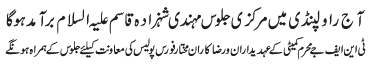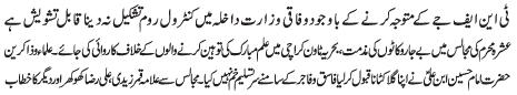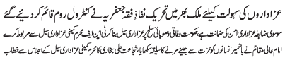 | RAWALPINDI, September 27: Not setting up Muharram Azadari Control Rooms in the interior and provisional ministries is a cause of concern - TNFJ | |||