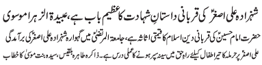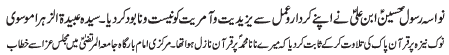 ISLAMABAD, September 30: Majalis and processions of Ashrae Beemar e Karbala continued; the oppressed must follow the path of Imam Hussain (AS) - Ali Hussain |