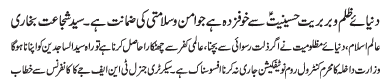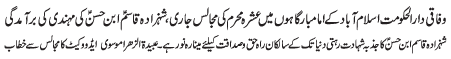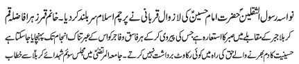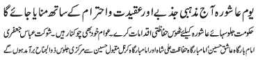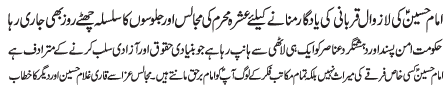 | ISLAMABAD, September 9: During Muharram ul Haram the message of Hussainiat will be propagated | |||