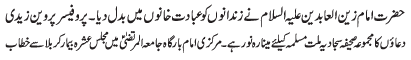 ISLAMABAD, September 2: Following the pious life of Imam Ali (AS) have a solution for all problems |