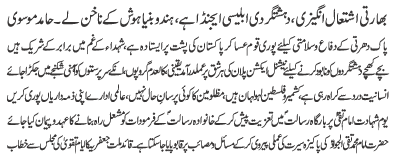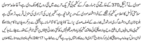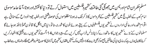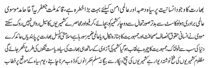 | ISLAMABAD, August 28: Kashmiris are following the spirit of Karbala, no power on earth can subjugate them - Hamid Moosavi | |||