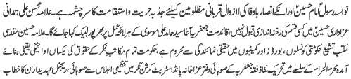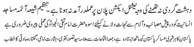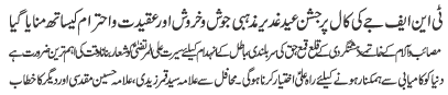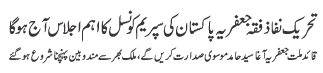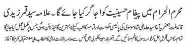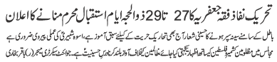 | ISLAMABAD, August 29: Tehreek Nafaz e Fiqh e Jafariya announced the observation of the "Istaqbale Muharram" from 27-29 Zilhajj | |||