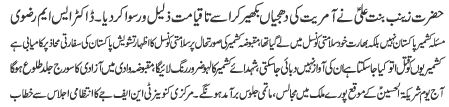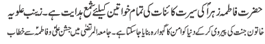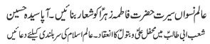 | ISLAMABAD, August 18: Hazrat Zainab (SA) destroyed the face of dictatorship and defame it till the Judgment Day - D S M Rizvi | |||