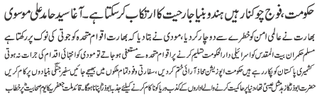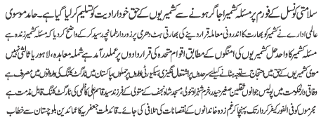 | ISLAMABAD, August 24: By presenting the issue of Kashmir on the forum of Security Council, Kashmiri right of self-determination has again been declared as fundamental rights and only solution of Kashmir issue - Hamid Moosavi | |||