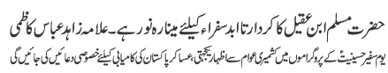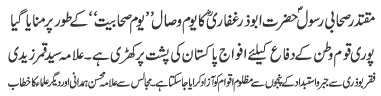 | ISLAMABAD, August 7: Youme Sahabeyat will be observed to mark the wafat of the pious companion of the Holy Prophet, Hazrat Abuzr Ghafari | |||