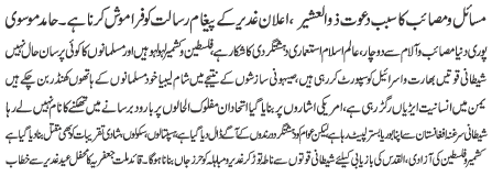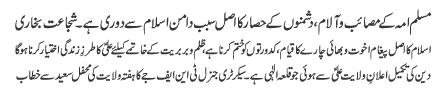 | ISLAMABAD, August 23: The real reason for the difficulties and hardships faced by the Muslim nation is due to deviating from the teachings of Islam - Shuja'at Bukhari | |||
