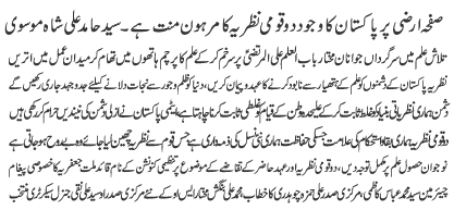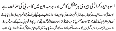 | ISLAMABAD, August 22: Following of Haider e Karar guaranties success in all fronts and provides solution of all kinds of problems - Qamar Zaidi | |||