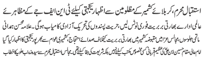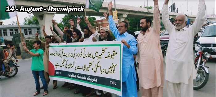 RAWALPINDI, August 31: TNFJ held protests to express solidarity with the people of Karbala e Kashmir |