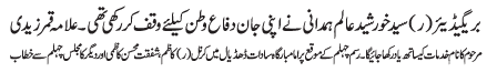 ISLAMABAD, January 14: Hazrat Zainab (SA) with great courage and patience defeated the evil world - Shuja'at Bukhari |