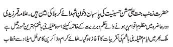 ISLAMABAD, January 13: Yazidiat couldn't hold its ground till this date due to the sermons of Hazrat Zainab (SA) - Dr S M Rizvi |