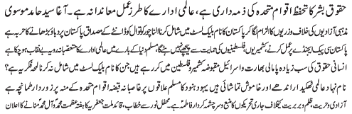 ISLAMABAD, January 9: The evil movement of accepting Israel and establishing ties with it is equivalent to causing grave harm to the cause of the martyrs of Palestine - Qamar Zaidi |