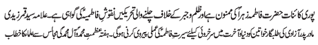 ISLAMABAD, January 20: The pious character of Hazrat Fatima Zahra (SA) is the beacon of lighy for the woman folk - Major (R) Baqir Bukhari |