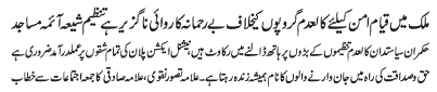 | RAWALPINDI, January 3: All conspiracies will be failed against the motherland with the display of unity - Allama Taqi | |||