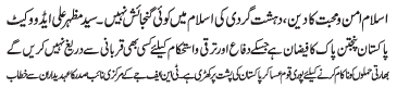 | ISLAMABAD, March 7: Islam is the religion of peace and there is no place of terrorism in the religion - Syed Mazhar Ali Advocate | |||