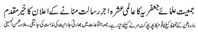 | ISLAMABAD, March 4: TNFJ Announced the observation of Aalmi Ashrae Ajre Rasalat; Solidarity will be expressed with the Armed Forces of Pakistan and the oppressed | |||