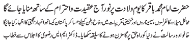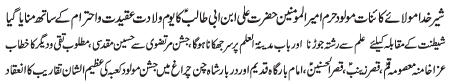 RAWALPINDI, March 14: The Waladat e Purnoor of Imam Ali Al Hadi was celebrated with great religious zeal and reverence |