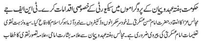 | ISLAMABAD, November 2: The government should ensure security arrangements for the programs of Hafta e Ehad O Peyman - TNFJ | |||