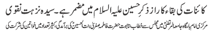 | RAWALPINDI, November 10: Steps must be ensured to bring the youths of the nation to the centers of knowledge of Madina and Najaf - Qamar Zaidi | |||