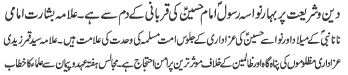 | ISLAMABAD, November 4: Processions of the Milaad of the Holy Prophet (SAWW) and Azadari Imam Hussain (AS) is the sign of unity amongst the Muslim nation | |||