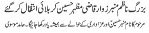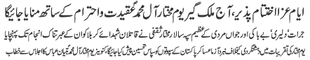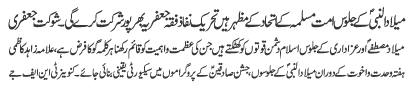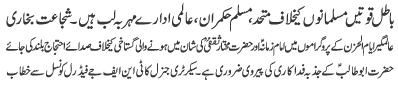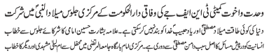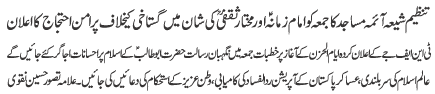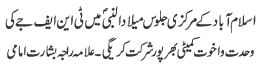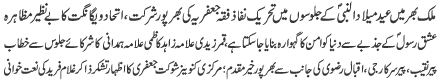 | ISLAMABAD, November 9: The TNFJ announced the observation of Alamgheer Hafta e Wahdat O Akhuwat from 12-18 Rabiul Awwal | |||