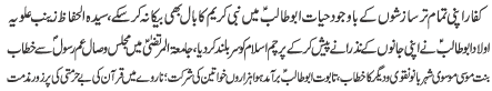 | ISLAMABAD, November 24: Today the Youme Wafat of Hazrat Abu Talib (AS) will be commemorated with great respect and reverence | |||