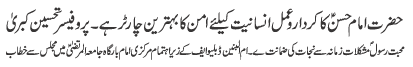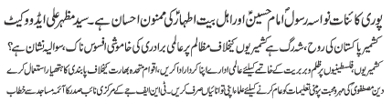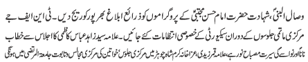 | RAWALPINDI, October 27: The print and TV media should highlight the wasal of Nabi (SAWW) and Shahadat of Imam Hassan Mujtaba (AS) - TNFJ | |||