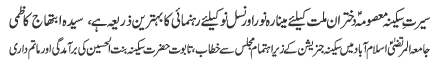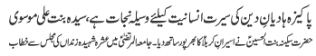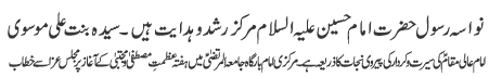 | ISLAMABAD, October 15: The family of the Prophethood (AS) is the symbol of honour, dignity and freedom - Maemona Kazmi | |||