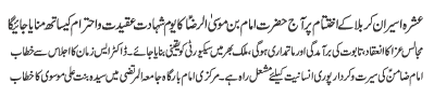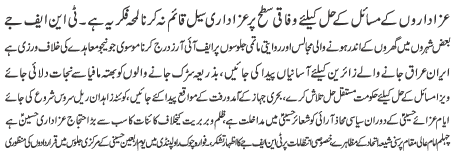| ISLAMABAD, October 18: Special security measures must be in place during Chehlum Syed ul Shuhada - TNFJ | |||