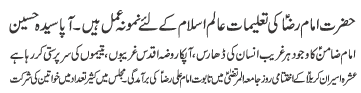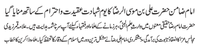 | ISLAMABAD, October 17: On the last day of Ashrae Aseerane Karbala, Youme Shahadat of Imam Ali Raza (AS) will be commemorated | |||