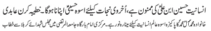 | RAWALPINDI, October 14: Hussainiat must be adopted in order to get freedom from oppressors and usurpers - Qamar Zaidi | |||