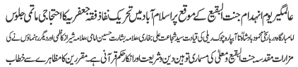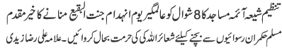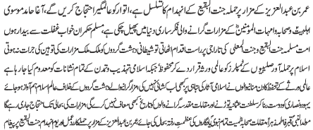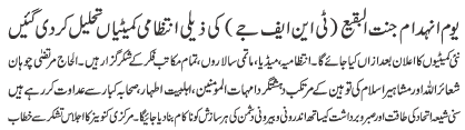 ISLAMABAD, June 3: The sub-committees of the TNFJ to oversee the Day of destruction of Jannat Al Baqi are dissolved |