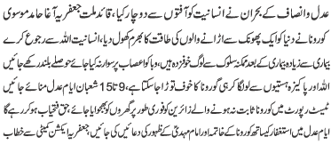 RAWALPINDI, April 11: The colonial powers have made life of human being unbearable; every oppressed is waiting for the Imam of our era - Qamar Zaidi |